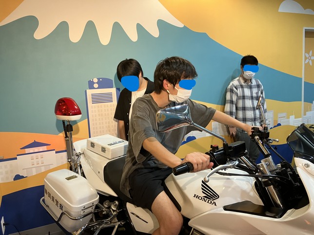 8日は静岡県警察110センターへ見学に行きました。静岡県内からの110通報が全て集まる場所です。110通報の対応方法を紹介していただいたり今は使われていない交通取締用自動二輪車(白バイ)に乗ることが出来たりしました。110通報の対応を見学中にも何件か110通報が実際にきており、「数分でこんなに110通報くるんだ」と生徒達は驚いていました。また参加した生徒は全員白バイに乗るのは初めてだったため、興味深そうに乗っていました。想像よりも大きく「かっこいい!」、「乗り降りが大変」など見た目に関する意見や実際に乗って感じた意見など色々な意見を話し合っていました。
